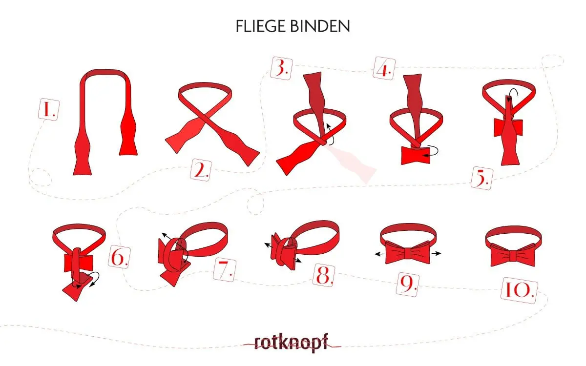 Nachdem du alles vorbereitet hast, kann es endlich losgehen. Mit ein wenig Ruhe und Konzentration gelingt dir der klassische Fliegenknoten ganz leicht. Wichtig ist, dass du die Schritte langsam durchgehst und dich nicht aus der Ruhe bringen lässt. Schon nach wenigen Versuchen wirst du ein Gefühl für die Bewegungen entwickeln.