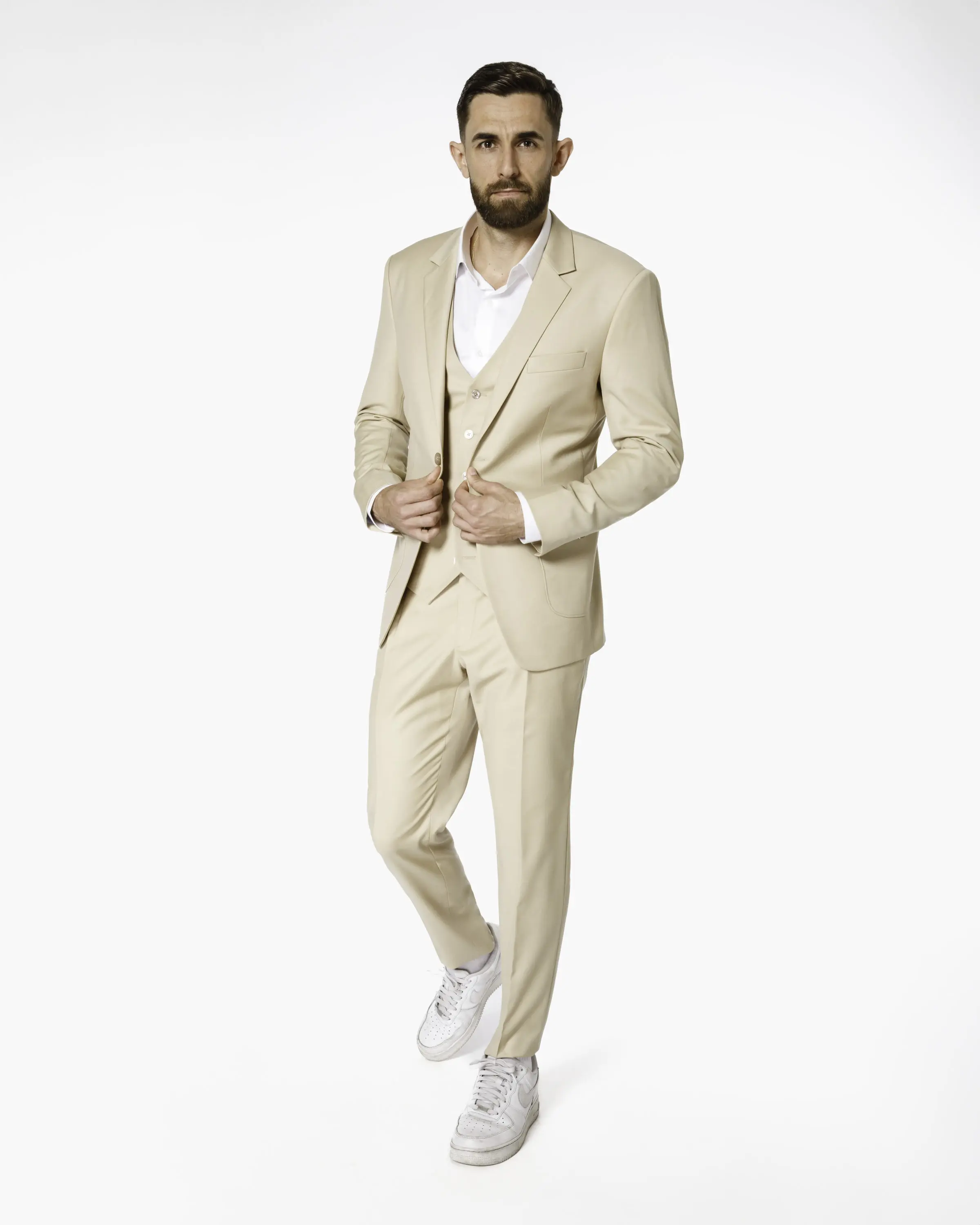 Ganz wichtig sind allerdings zwei Punkte: Ein beiger Maßanzug muss perfekt sitzen. Sonst wirkt er schnell wie ein Sommeranzug von der Stange, der für eine Hochzeit dann doch zu leger wirkt.