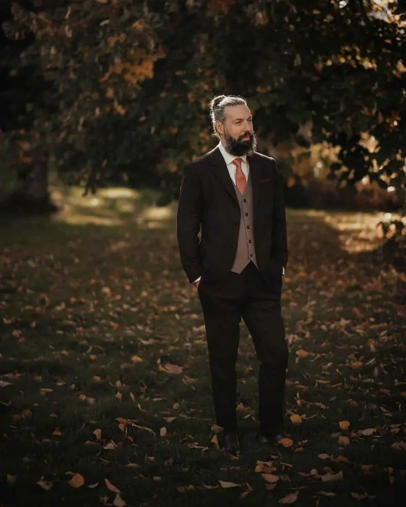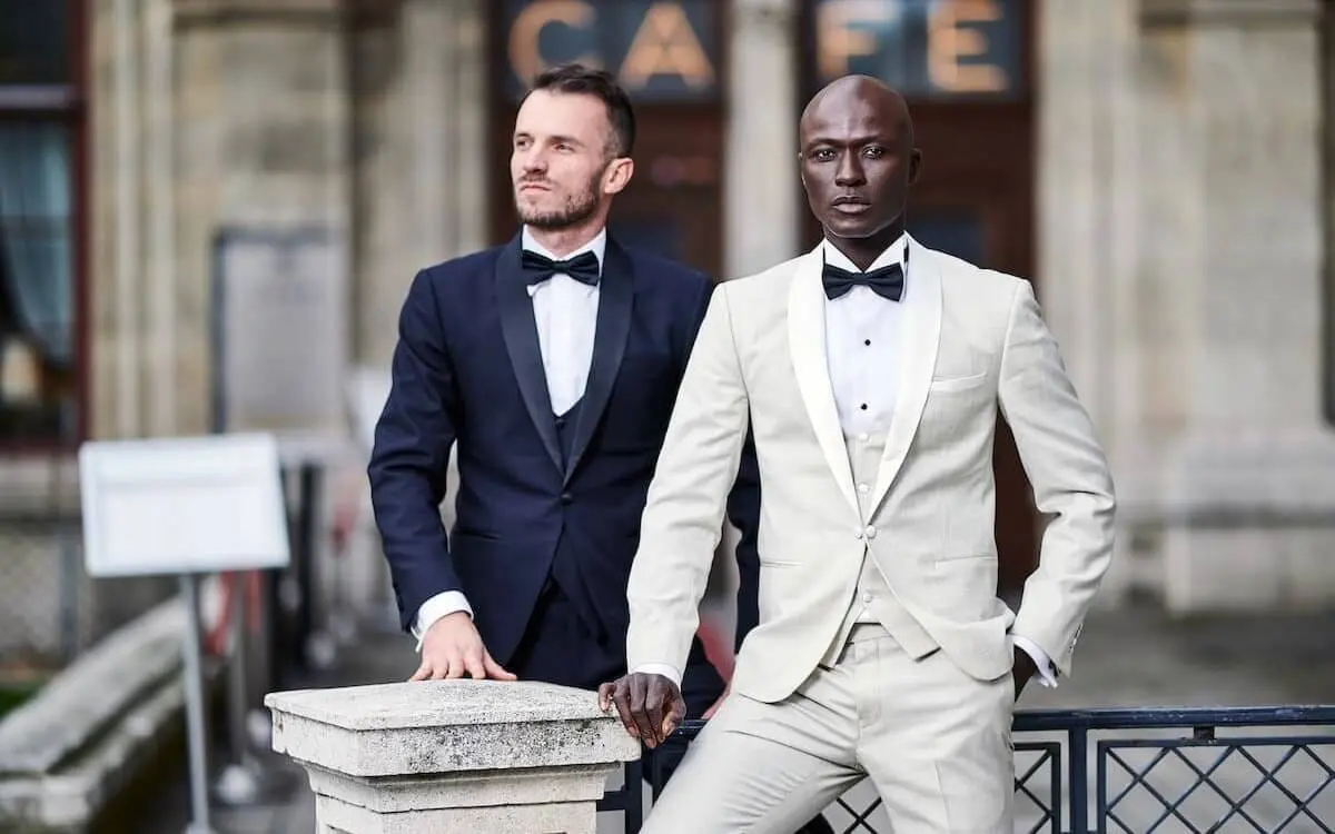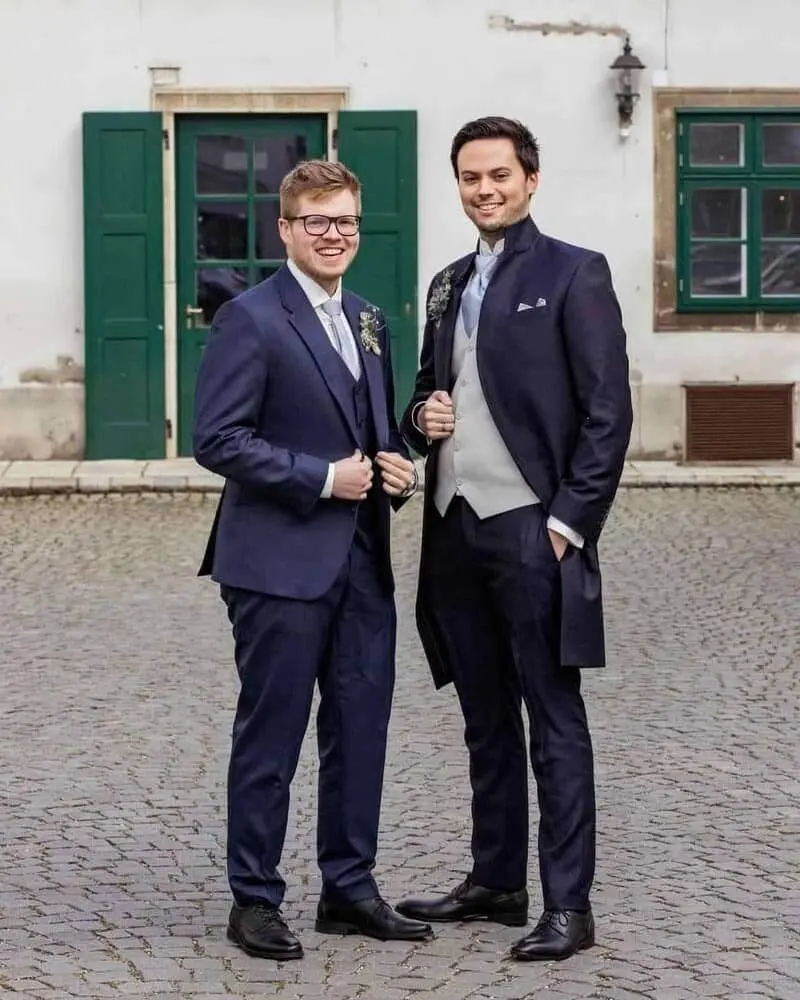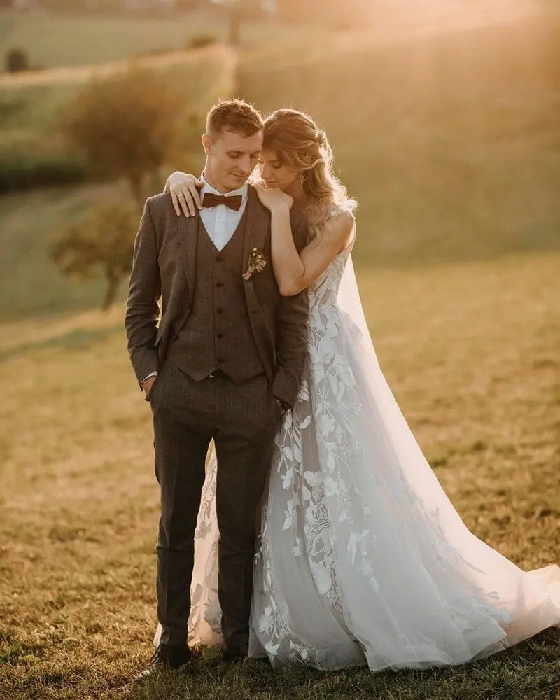 Deshalb wird auch das Farbkonzept immer wichtiger. Der Anzug sollte natürlich mit dem Stil der Partnerin bzw. des Partners harmonieren und sich gut ins Setting und schlussendlich ins Gesamtbild der Hochzeit anschmiegen.
