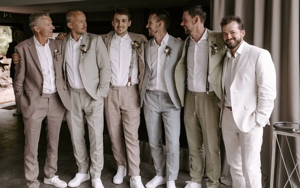 Und eine Sache, die man natürlich als Bräutigam bedenken sollte: Beige eignet sich nicht für jeden Hauttyp, dunkle Haut- und Haartypen sind hier klar im Vorteil.